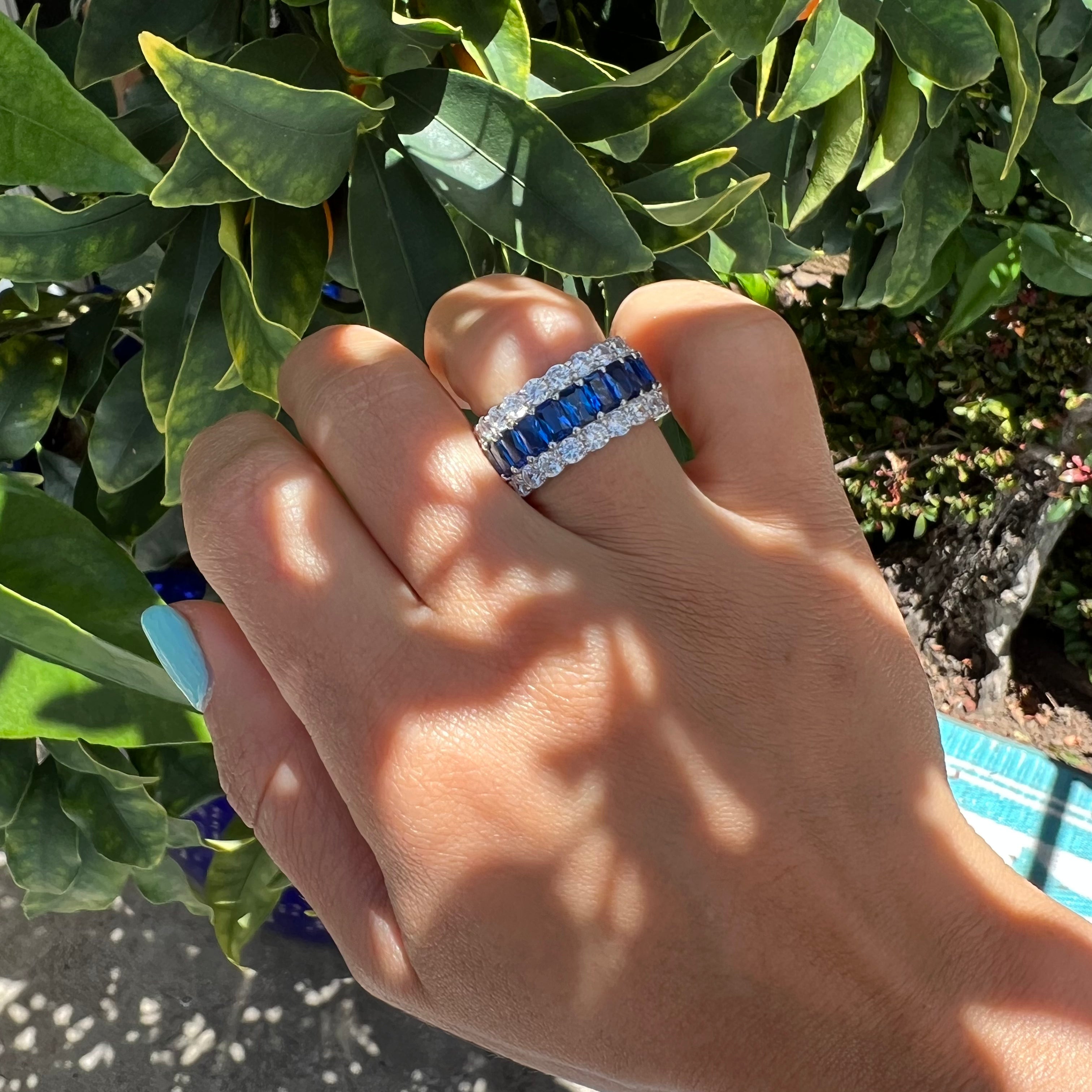 Sterling silver band with sapphire & clear cz stones all around from our new collection.. A dazzling and classic piece which can be worn forever